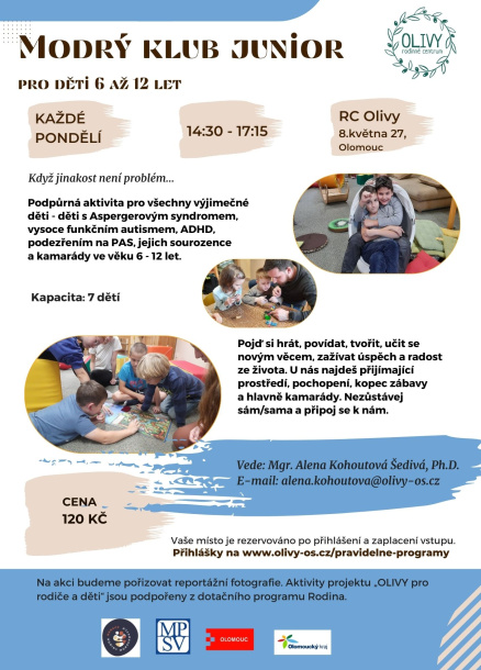 Podpůrná aktivita pro všechny výjimečné děti - děti s Aspergerovým syndromem, vysoce funkčním autismem, ADHD, podezřením na PAS, jejich sourozence a kamarády ve věku 6 - 12 let.