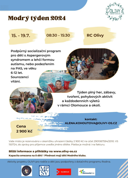 Týden plný her, zábavy, tvoření, pohybových aktivit a každodenních výletů v rámci Olomouce a okolí.