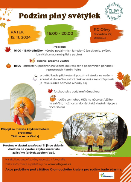 Zveme Vás na podzim plný světýlek 15. 11. 2024 v RC Olivy od 16 hod.