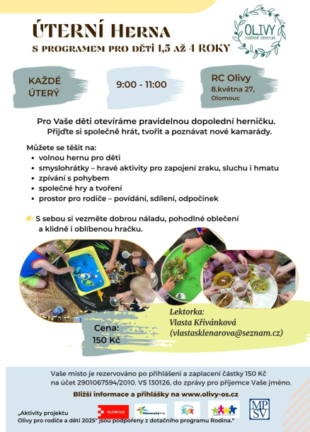 Pro Vaše děti otevíráme pravidelnou dopolední herničku.